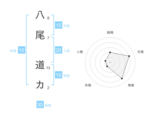 八尾 道カさんの天格は15画の4点!