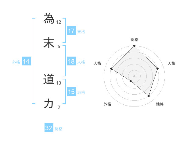 為末 道カさんの天格は17画の4点!