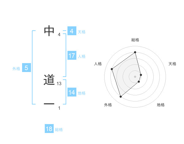 中 道一さんの総格は18画の4点!