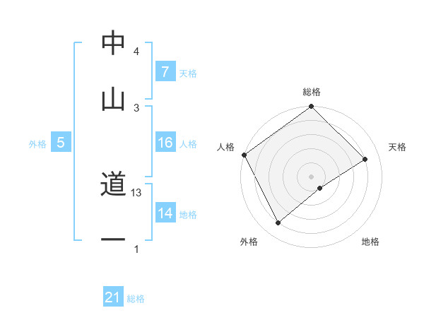 中山 道一さんの総格は21画の5点!