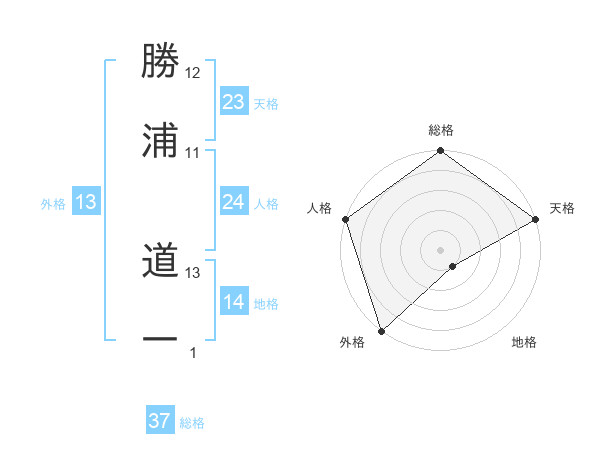 勝浦 道一さんを姓名の画数から五運を鑑定