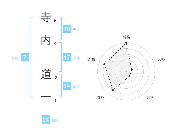 寺内 道一さんの総格は24画の5点!