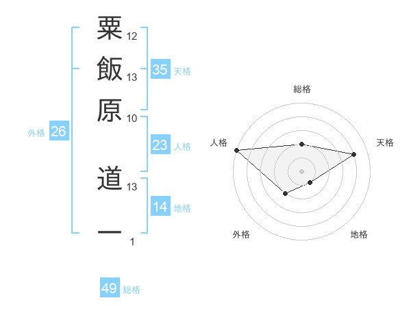 粟飯原 道一さんの総格は49画の2点!