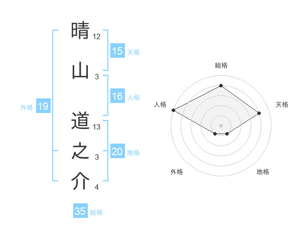 晴山 道之介さんを姓名の画数から五運を鑑定