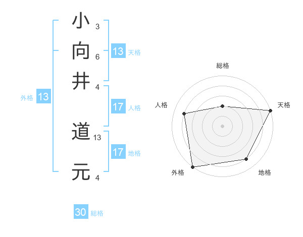 小向井 道元さんの外格は13画の5点!