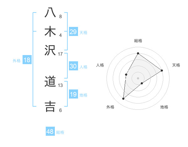 八木沢 道吉さんの総格は48画の4点!