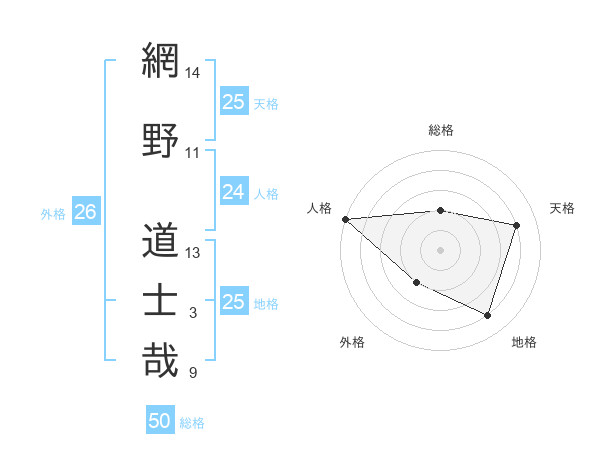 網野 道士哉さんの総格は50画の2点!