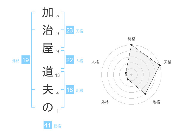 加治屋 道夫のさんの天格は23画の5点!