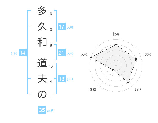 多久和 道夫のさんを姓名の画数から五運を鑑定