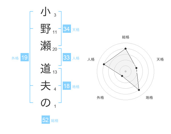 小野瀬 道夫のさんを姓名の画数から五運を鑑定