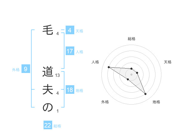 毛 道夫のさんを姓名の画数から五運を鑑定