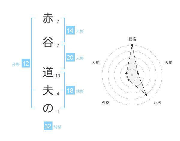赤谷 道夫のさんの外格は12画の1点!