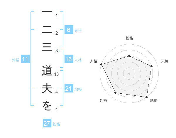 一二三 道夫をさんを姓名の画数から五運を鑑定