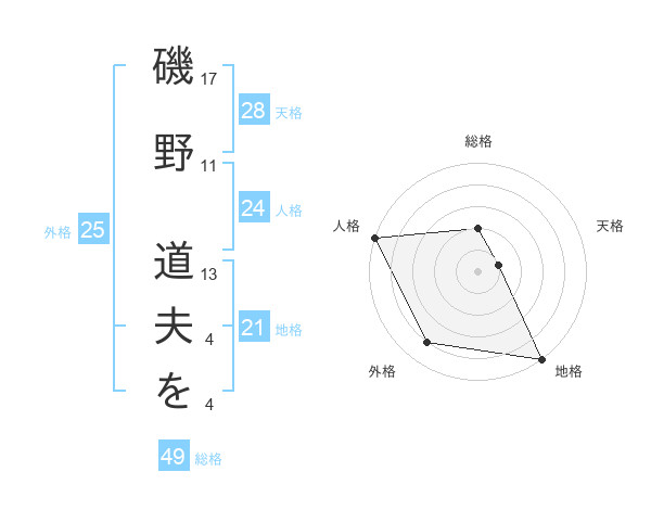 磯野 道夫をさんを姓名の画数から五運を鑑定