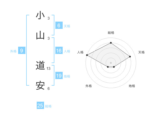 小山 道安さんの天格は6画の4点!