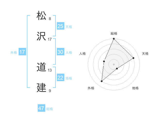 松沢 道建さんの総格は47画の5点!