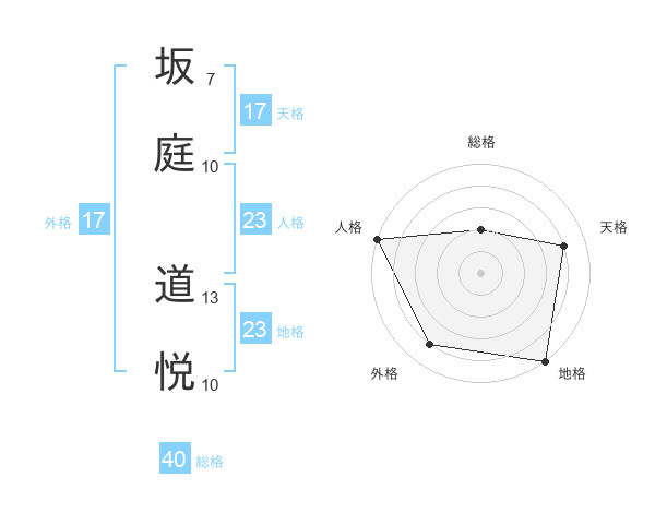 坂庭 道悦さんを姓名の画数から五運を鑑定