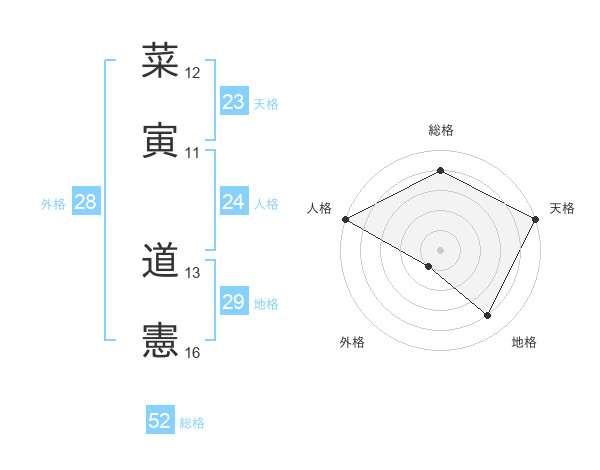 菜寅 道憲さんを姓名の画数から五運を鑑定