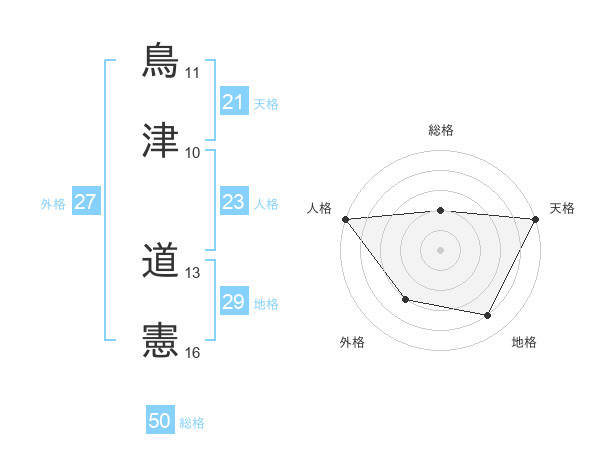 鳥津 道憲さんを姓名の画数から五運を鑑定
