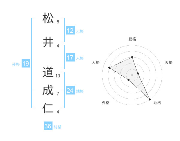 松井 道成仁さんを姓名の画数から五運を鑑定