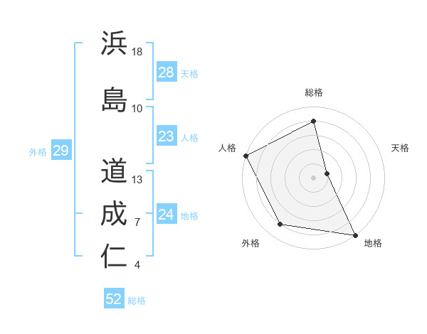 浜島 道成仁さんの総格は52画の4点!