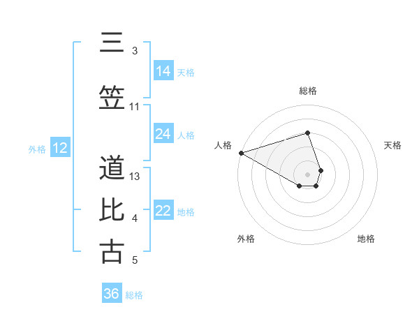 三笠 道比古さんを姓名の画数から五運を鑑定