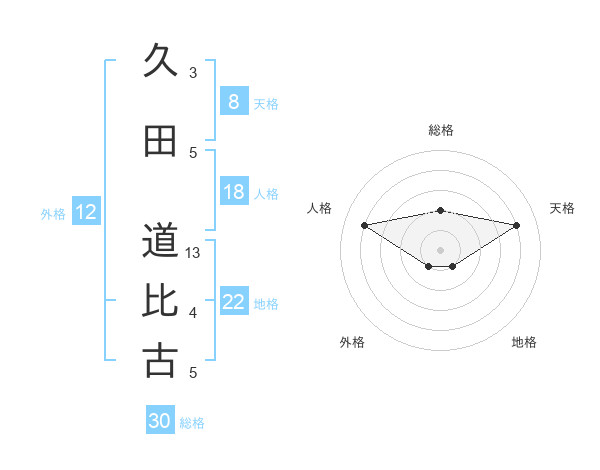 久田 道比古さんの総格は30画の2点!