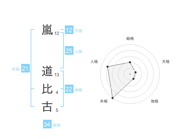 嵐 道比古さんの総格は34画の2点!