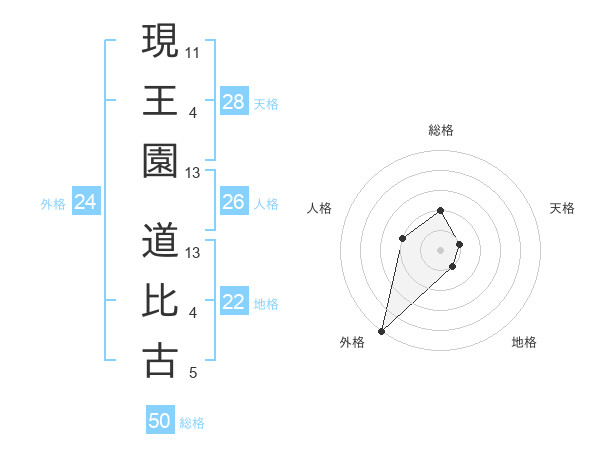 現王園 道比古さんを姓名の画数から五運を鑑定