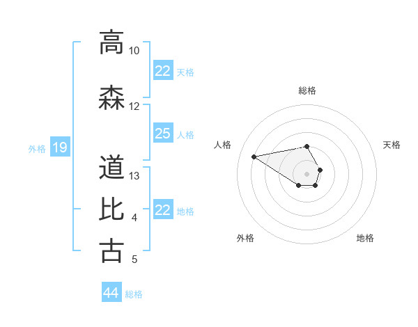 高森 道比古さんの地格は22画の1点!
