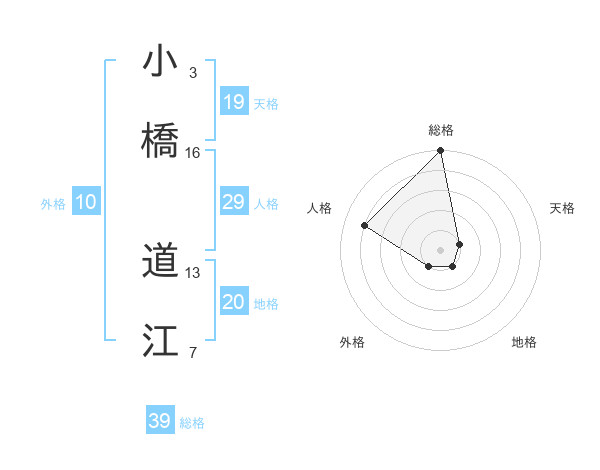 小橋 道江さんの総格は39画の5点!