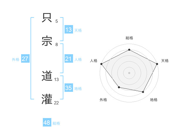 只宗 道灌さんを姓名の画数から五運を鑑定
