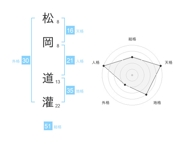 松岡 道灌さんの総格は51画の3点!