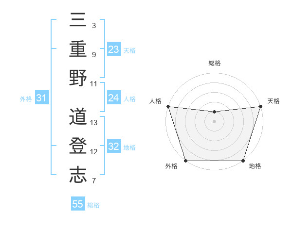 三重野 道登志さんを姓名の画数から五運を鑑定