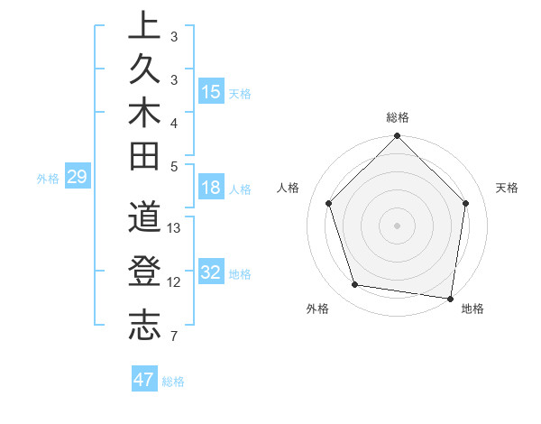 上久木田 道登志さんの総格は47画の5点!
