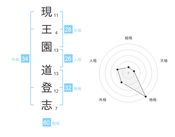 現王園 道登志さんの総格は60画の1点!