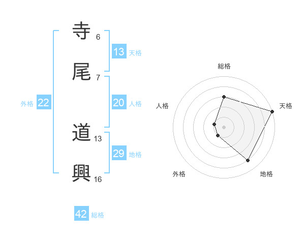 寺尾 道興さんの天格は13画の5点!