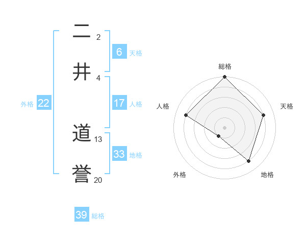二井 道誉さんの総格は39画の5点!