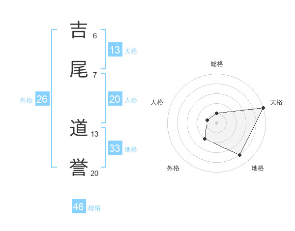 吉尾 道誉さんの天格は13画の5点!