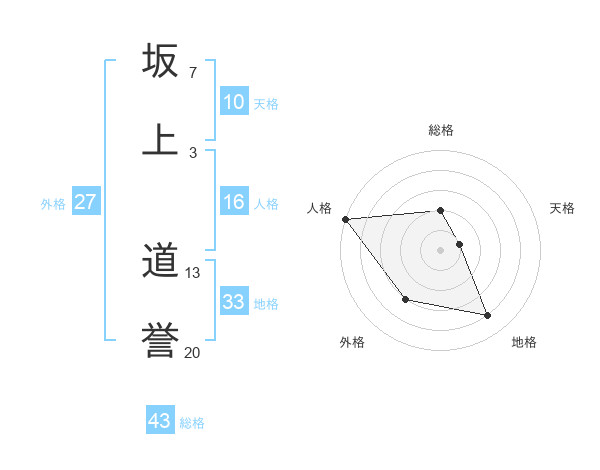 坂上 道誉さんを姓名の画数から五運を鑑定