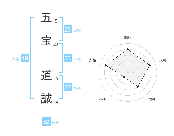 五宝 道誠さんの総格は52画の4点!