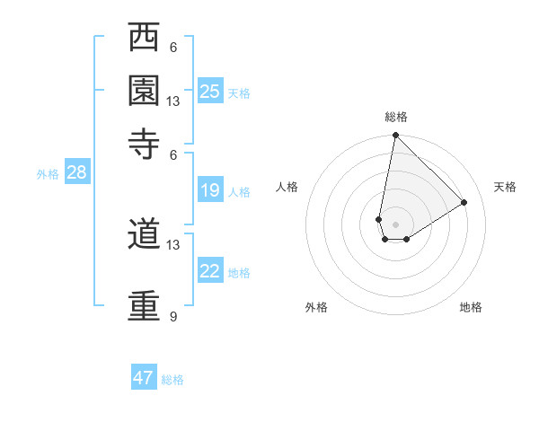 西園寺 道重さんの総格は47画の5点!