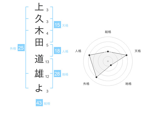 上久木田 道雄よさんを姓名の画数から五運を鑑定