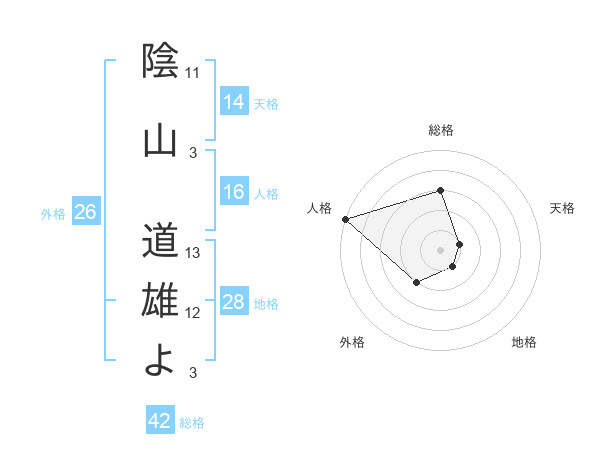 陰山 道雄よさんを姓名の画数から五運を鑑定