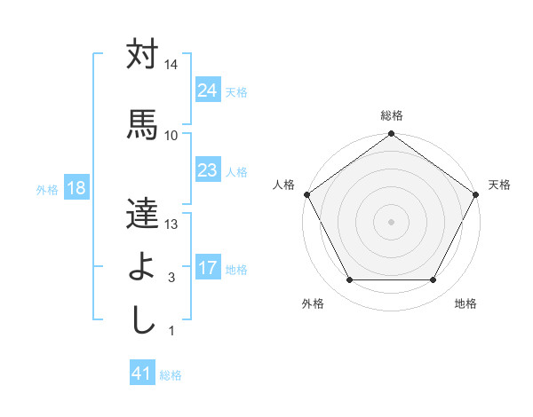 対馬 達よしさんの天格は24画の5点!