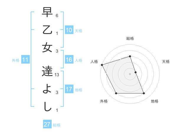 早乙女 達よしさんを姓名の画数から五運を鑑定
