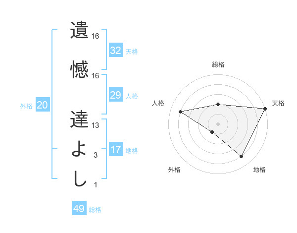 遺憾 達よしさんの総格は49画の2点!