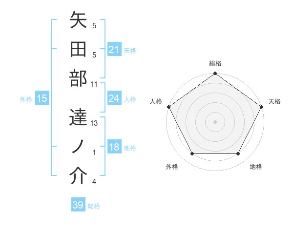 矢田部 達ノ介さんを姓名の画数から五運を鑑定