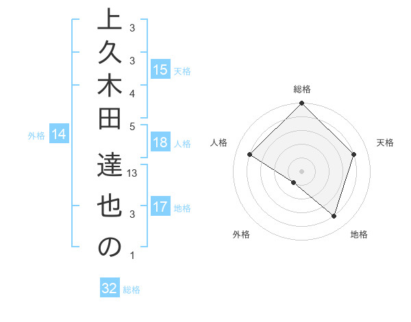 上久木田 達也のさんを姓名の画数から五運を鑑定