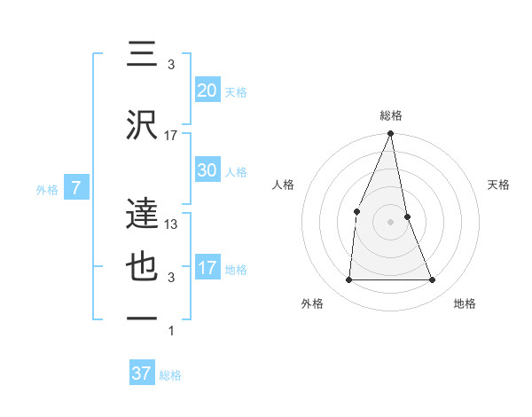 三沢 達也一さんの総格は37画の5点!